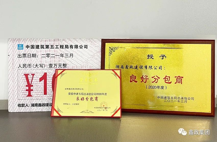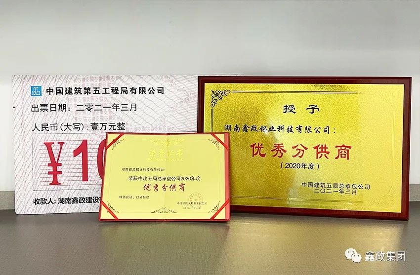 瀏覽次數(shù):1123喜訊連連捷報(bào)傳。近日,在中建五局總承包公司2021年分包(供)商答謝會(huì)暨優(yōu)秀分包(供)商表彰會(huì)上,集團(tuán)下屬子公司湖南鑫政鋁業(yè)科技有限公司與湖南鑫政建設(shè)有限公司分別喜獲2020年度“優(yōu)秀分供商”與“良好分包商”獎(jiǎng)項(xiàng)。